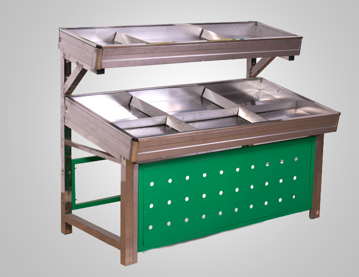 These racks are suited both for areas with small floor space of a few square meter or large floor spaces of the very extensive markets. Notable for their sturdy construction, large shelf space.